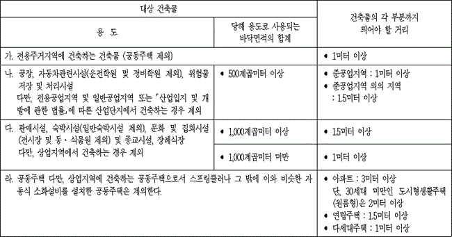 건축물의 대지는 예외적인 경우를 제외하고는 2미터 이상이 도로에 접해야 하며, 용도지역ㆍ용도지구, 건축물의 용도 및 규모 등에 따라 건축선 및 인접 대지경계선으로부터 6미터 이내의 범위에서 해당 지방자치단체의 조례로 정하는 거리 이상을 띄어야 합니다.