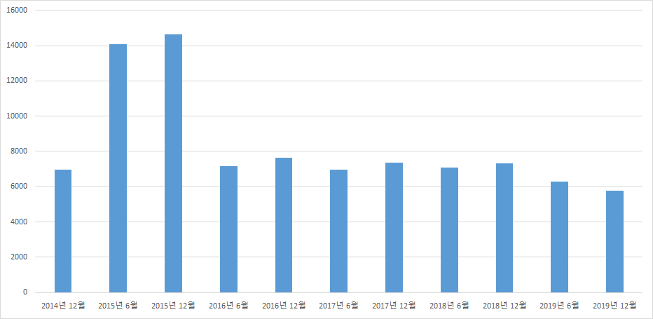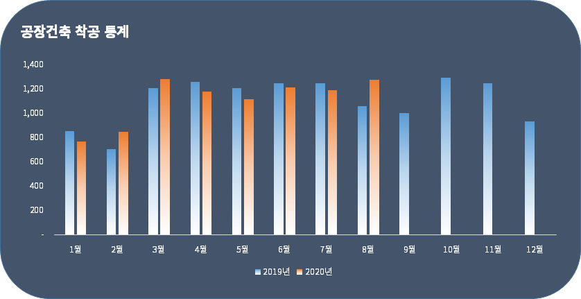 - 공장 순증감은 연평균 5,900건으로 2015년 이후 하향 추세(‘15년 9,800건 → ‘19년 4,000건)이다. 업종별로는 2019년 금속, 기타기계, 식료품·전기장비, 고무플라스틱, 화학, 의료정밀 순으로 공장 순증감이 높았다. 업종 전반적으로 순증감은 하향 추세에 있으나 식료품, 화학, 비금속 등 업종은 2019년에도 큰 하락 없이 선방했다.