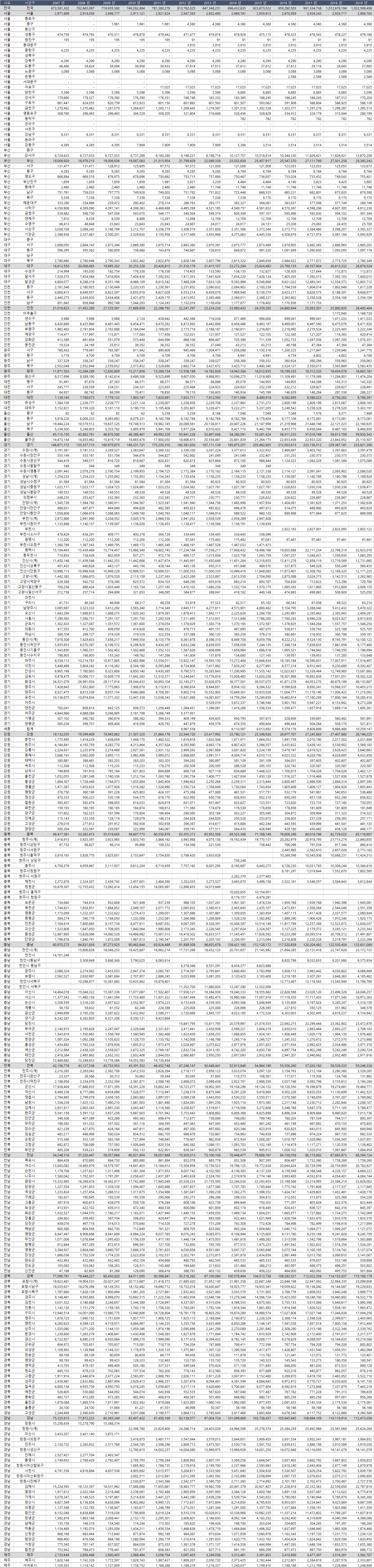 표. 지자체별 공장용지 면적 추이(2007년~2019년)