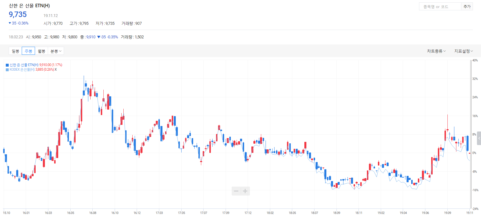 - 막대차트 : 신한 은 선물 ETN(H), 500017