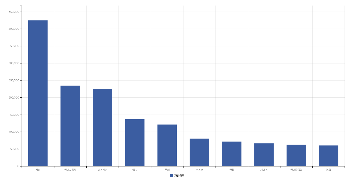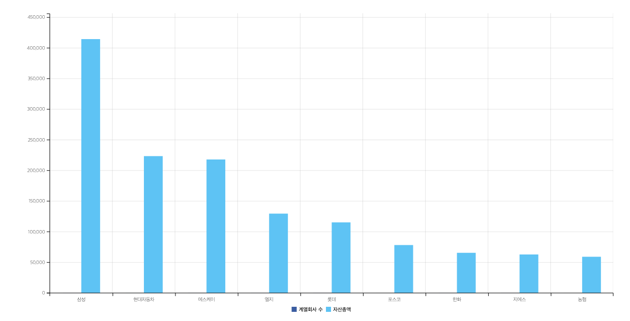| 순위 | 기업집단명 | 동일인 | 계열회사수 | 자산총액 |