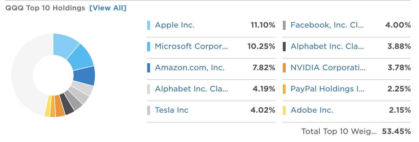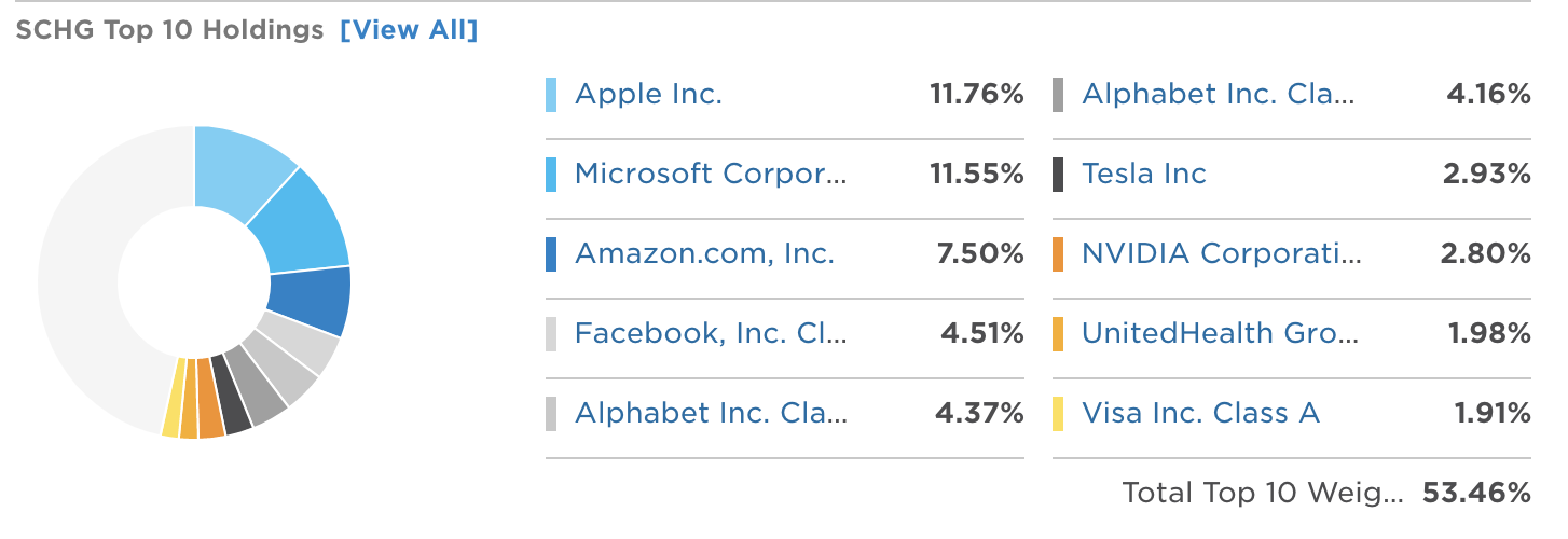 총보수는 0.2%, AUM은 $195B이다. Top 10의 종목 비중은 53.45%