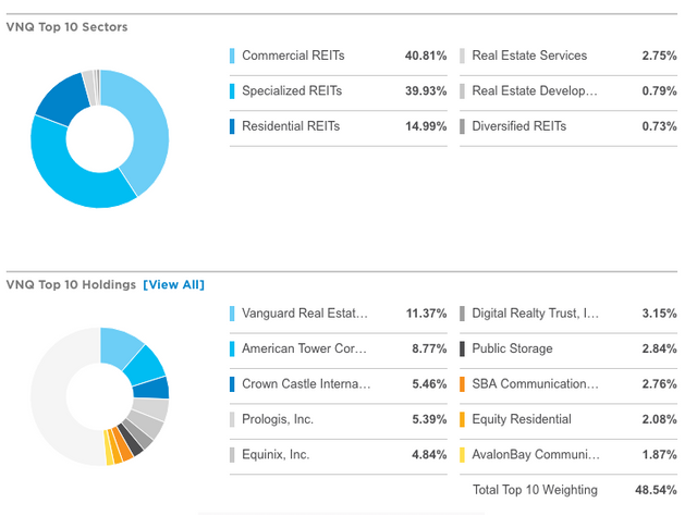 미국 부동산 리츠 ETF 입니다. 규모는 26억 달러로 부동산 리츠 ETF 가운데 가장 큰 규모입니다. 총보수는 0.12%로 저렴한 편입니다.