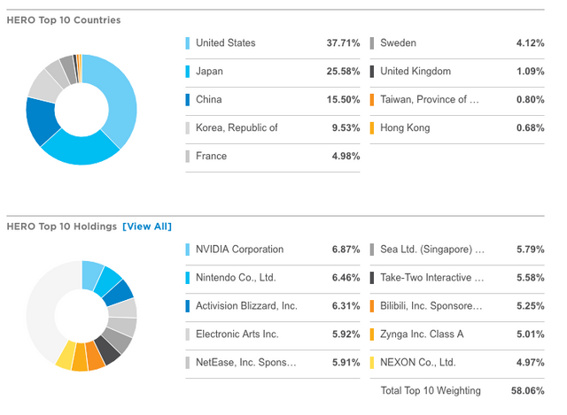 전날 소개한 HERO처럼 비디오 게임과 e스포츠와 관련된 기업들을 담고 있는 ETF이며, 규모는 1억 7천만 달러로 2배 이상 큽니다.