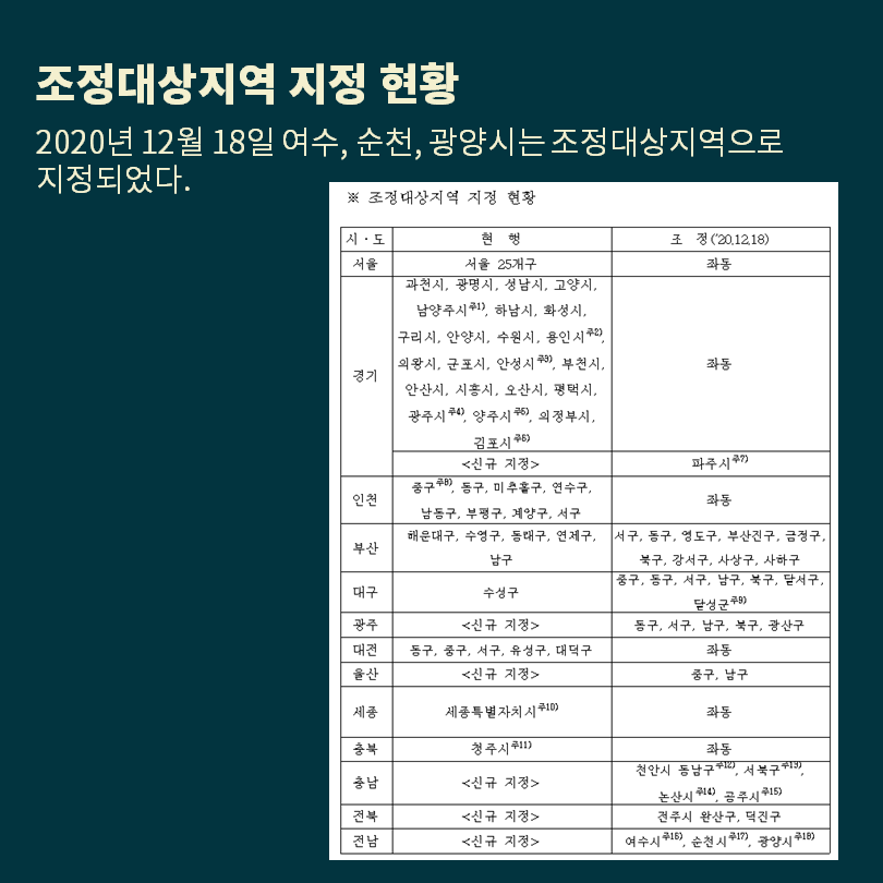 조정대상지역 지정 및 해제 공고(2020.12월)